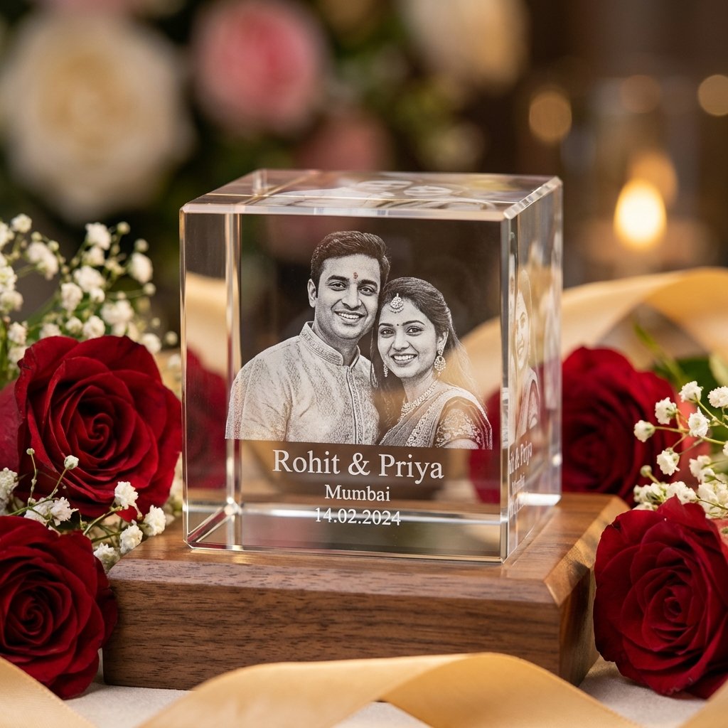 The 3D Engraved Personalized Crystal is a luxury keepsake crafted from high-quality optical crystal,